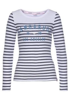 KangaROOS Langarmshirt mit Marken-Schriftzug im Brustbereich Rot-weiß-gestreift, Weiß-gestreift