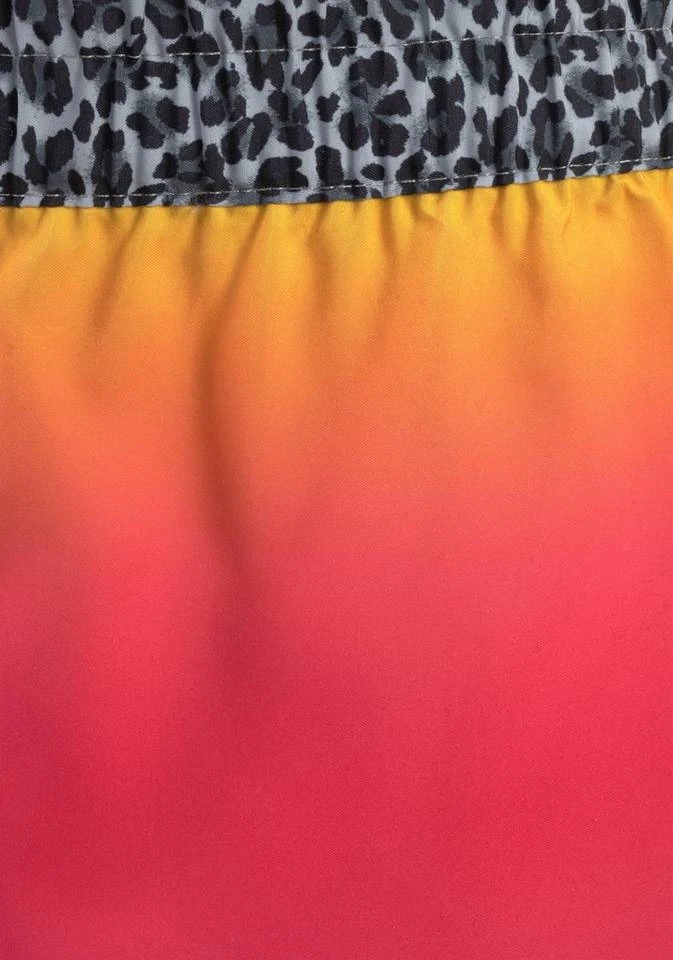 Hingucker! Diese Shorts von Kangaroos sorgen mit dem Mix aus Batikmuster und Leoprint für frischen Wind. Der Kontrast zwischen dem Farbverlauf und dem Leoprint an Bund, Seitennähten und Saum macht hier die Musik. Der elastische Gummibund und die softe Microfaserqualität bieten herrlichen Tragekomfort beim Baden oder auch beim Relaxen am Strand. Die praktische Klettverschlusstasche hinten bietet dabei Platz für Kleingeld und Co. Ob über dem Bikini getragen oder solo mit einem schlichten Tanktop – die Shorts von Kangaroos machen in jeder Kombination gute Laune.
