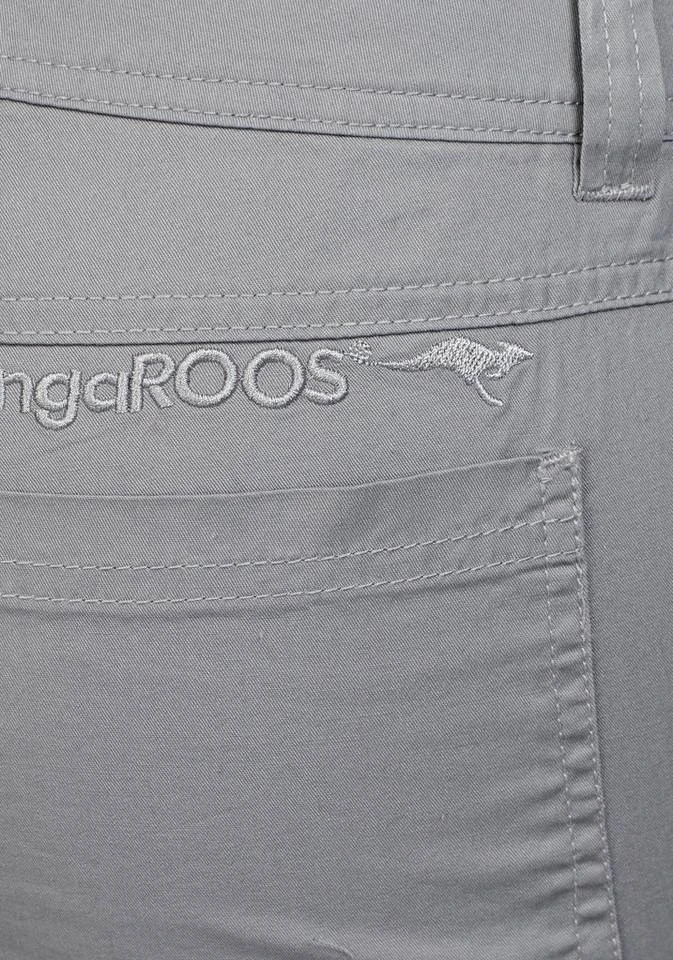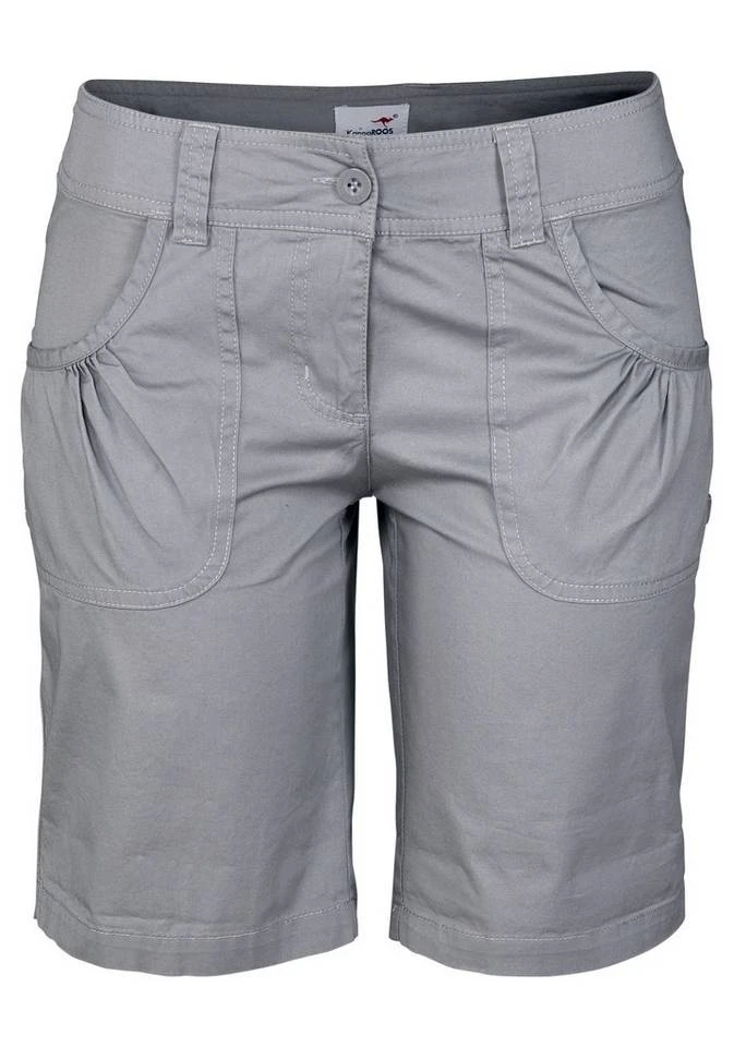 Die modischen Bermudas von Kangaroos lassen sich auch als kurze Shorts tragen. Einfach die Beine hochkrempeln und mit den seitlichen Riegeln festknöpfen, schon werden aus den lässigen Bermudas coole Shorts. Der Schnitt ist schön leger mit leicht hüftigem Sitz. 2 Eingrifftaschen vorn und 2 aufgesetzte Taschen hinten, kleine Kangaroos-Stickerei über der rechten Rücktasche. Die Bermudas sind perfekt für warme Tage und gehören in jedes Urlaubsgepäck, denn hier bekommt man mit nur einer Hose 2 verschiedene Styles. Leichte Baumwollqualität. Über kurz oder lang kommt an diesen Bermudashorts von Kangaroos niemand vorbei!