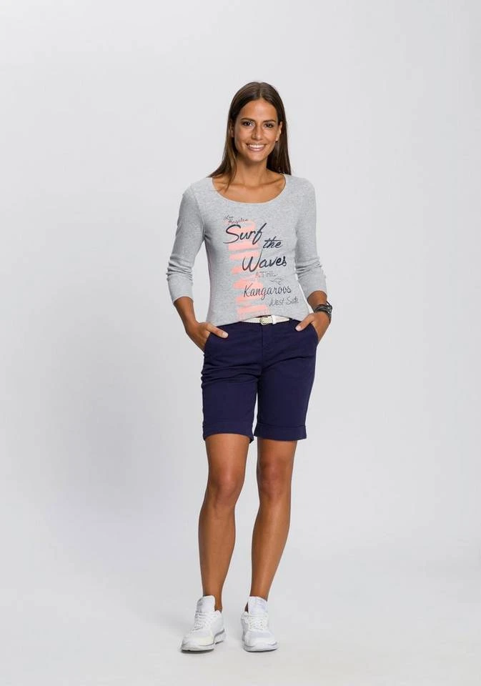 So gelingt dir im Handumdrehen ein dynamischer Freizeit-Look: Kombiniere die Shorts von Kangaroos einfach mit charmanten Espadrilles und einem lässigen Shirt. Den Rest macht die schlanke Hose mit den hochwertigen Bananentaschen und den schönen Saumaufschlägen. Die schlanke Passform und elegante Details wie die Leistentaschen im Rückteil geben jedem Ensemble einen sportiven Einschlag. Mit den Shorts von Kangaroos hast du deinen Freizeitstyle im Griff.