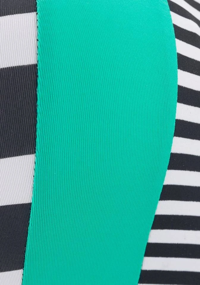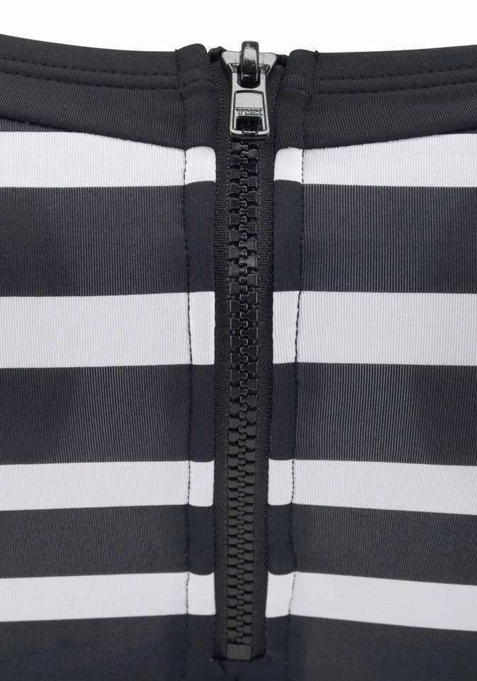 Wer auch beim Baden immer topmodisch gekleidet sein will, für den ist dieses Bustiertop von Kangaroos wahrscheinlich genau das Richtige. Das Bandeautop kommt im sportlich-trendigen Stil mit frontalem Reißverschluss und im coolen Streifen-Look. Die wattierten Cups des Bikinioberteils machen das Design perfekt. Je nach Laune können die Träger wahlweise auch abgenommen werden – für mehr Variationsfreude im Styling. Für echte Fashionistas und solche, die es werden wollen, ist das Bustiertop von Kangaroos ein Must-have.