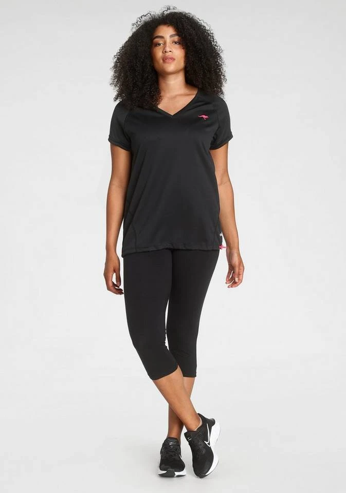 Das Funktionsshirt von Kangaroos begeistert mit dezent-sportlichem Chic. Ein kontrastfarbenes Elastikband im Saum wirkt nicht nur als kleiner Eyecatcher, sondern auch als tolle Möglichkeit, die Hüftpartie gekonnt zu umspielen. Flatlocknähte, kleiner Logoprint und der Basicstyle mit kurzen Raglanärmeln geben dem V-Neck einen vielseitigen Look. Im Sport überzeugt das Shirt mit atmungsaktiven und schnell trocknenden Eigenschaften, in der Freizeit mit seinem unverkennbaren Casual-Touch. Das Funktionsshirt von Kangaroos zeigt sich überall in Topform.