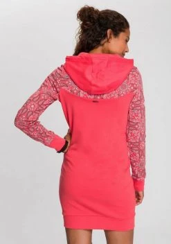 Du liebst unkomplizierte Freizeitstyles? Dann ist das Kleid von Kangaroos deine 1. Wahl. Das sportive Minikleid wartet mit einem tiefen V-Ausschnitt samt lässiger Kapuze auf. Klarer Hingucker ist allerdings der neckische Motiv-Alloverprint. Praktische Kängurutaschen bieten Stauraum für Kleinigkeiten wie Schlüssel, Smartphone und Co. Dezente Marken-Details wie die Labelschlaufe und der seitliche Schriftzug werten die Optik des Printkleides zusätzlich auf. Komfort kommt durch die weiche Jersey-Verarbeitung inklusive. High Top Sneakers und eine XL-Sonnenbrille entfalten das Potenzial des Minikleides. Das coole Kleid von Kangaroos wird bei dir bald in Dauereinsatz sein!