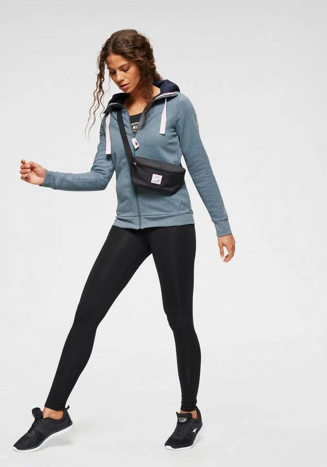 Du stehst auf Streetstyle-Mode? Dann ist die Sweatjacke von Kangaroos mit der großen Kapuze dein neuer Begleiter. Gemütlich: die breiten Sweatbündchen und die geteilte Kangurutasche. Der breite Kordelzug mit Labeldetail und auch das runde Logo am Ärmel verpassen der taillierten Jacke ein cooles Finish. Für einen entspannten Look kannst du die Kapuzensweatjacke mit deinen Lieblingsshorts, einem Printshirt und flachen Sneakers stylen. Einfach genial – die Sweatjacke von Kangaroos.