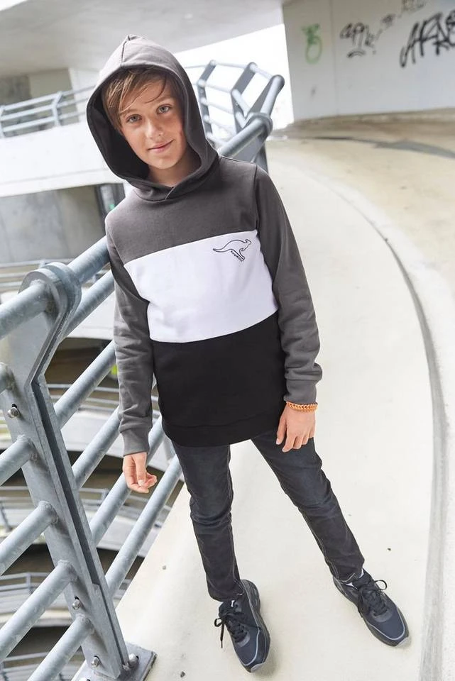Das Kapuzensweatshirt »im colorblock Design« von KangaROOS ist ein stylisches Essential, um den persönlichen Stil zu finden. Durch den Aufdruck wirkt es stylisch und cool. Die Ärmel enden in einem Rippbündchen. Es ist basic geschnitten, sodass sich Teenies frei bewegen können.