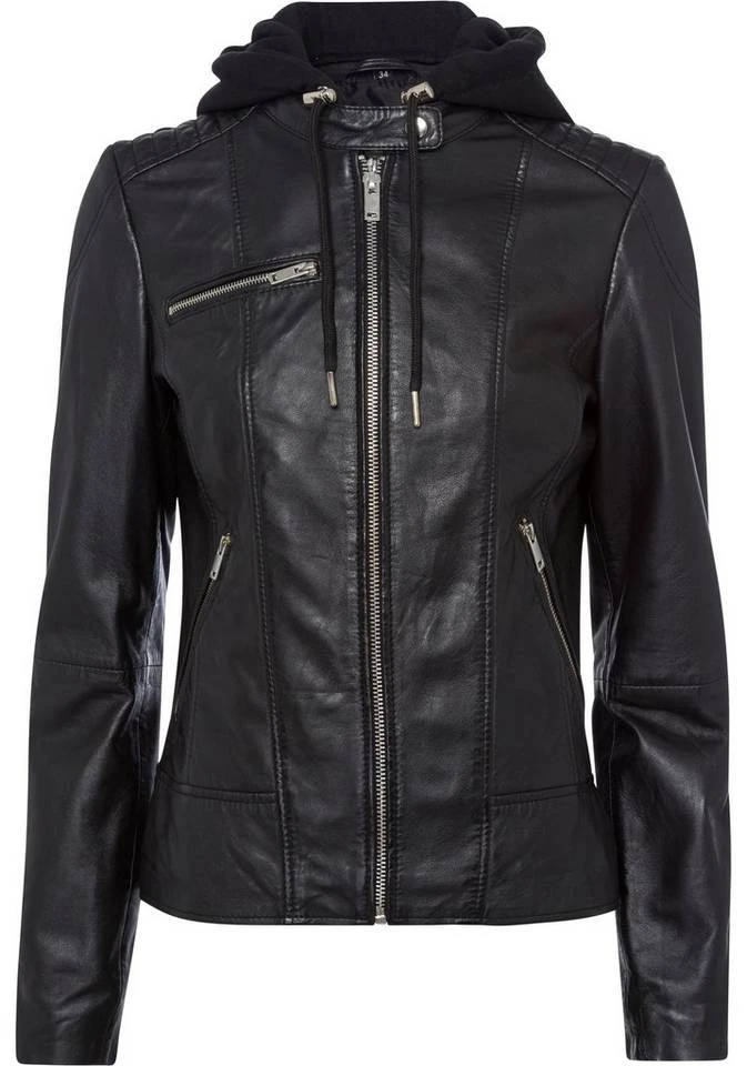| Materialzusammensetzung | Obermaterial: 100% Lammnappaleder. Futter: 100% Polyester. Kapuze: 65% Polyester, 35% Baumwolle |