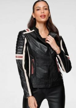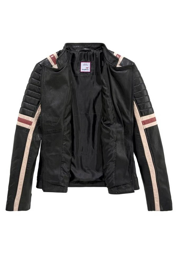 Die Lederjacke von KangaROOS wird zu deinem Lieblingsstück. Die Lederjacke reicht bis zur Hüfte und ist figurbetont geschnitten, so liegt sie leicht an und betont deinen Körper. Der Bikerkragen kann lässig aufgestellt oder anliegend getragen werden. In den Eingrifftaschen findest du Platz für Kleinigkeiten.