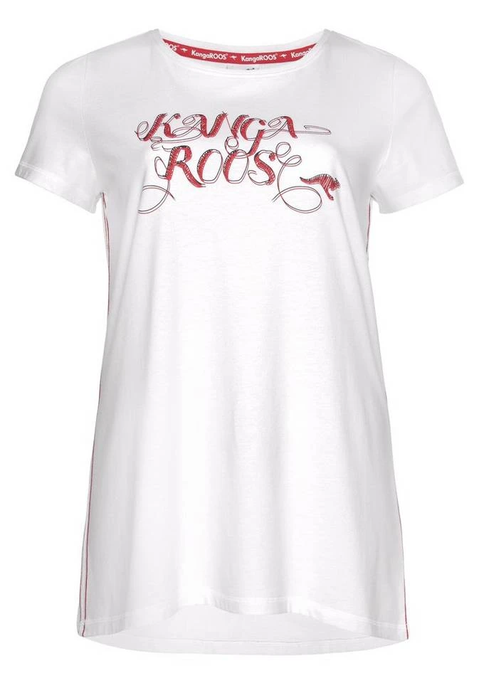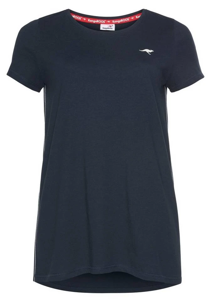 Für sportliche Frauen wie dich ist ein Trainingsoberteil nicht genug – deshalb kommt das Longshirt von Kangaroos im praktischen Doppelpack. Einmal mit einem großen Labelschriftzug vorn, einmal mit einem kleinen Logodruck auf der Vorderseite kannst du so nach Lust und Laune deinen Work-out-Style wählen. Seitliche Kontrastnähte lockern das Design beider Rundhalsshirts gelungen auf. Zudem sorgt ein angenehm zu tragender Jersey für einen angenehmen Komfort. Dieses Duo gehört in deinen Kleiderschrank: das Longshirt im Doppelpack von Kangaroos.