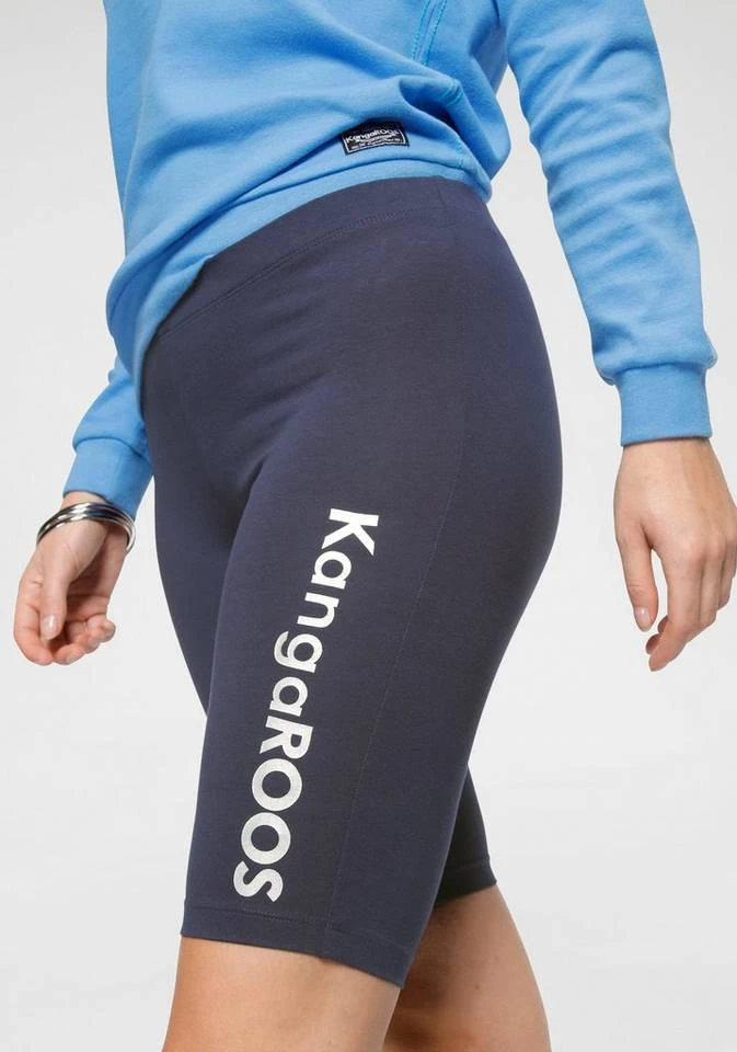 Wieder da: Die Radlerhose von Kangaroos holt den 90er-Jahre-Trend aus der Radsportecke hervor. Der unifarbene Style der kurzen Hose aus elastischer Baumwollqualität wird ergänzt mit einem Markenschriftzug in Metallic-Optik entlang des linken Beins. Ein flexibler Gummibund unterhalb der Taille rundet den bequemen Look ab, den du stilecht mit T-Shirt, Gürteltasche und Sneakern oder im gewagten Stilbruch mit einem Blazer stylen kannst. Hotpants waren gestern – heute tragen wir die Radlerhose von Kangaroos.