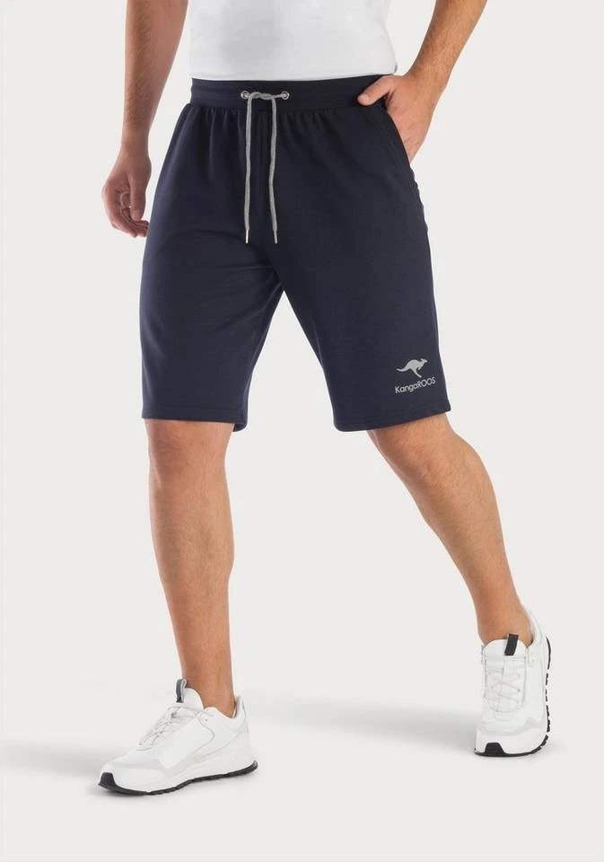 Du bist der Typ Mann, der die Dinge in seiner freien Zeit gern auch mal ruhiger angeht? Hier ist der passende Style für dich: die Relaxshorts von Kangaroos! Mit den farblich abgesetzten Kordeln und dem Logoprint auf dem linken Bein bietet diese kurze Jogginghose auf jeden Fall schon mal etwas fürs Auge. Die Sweatshorts aus einem weichen und stretchigen Baumwollmix sind zudem bequem und sitzen dank des elastischen und verstellbaren Tunnelzugbundes immer perfekt. Die seitlichen Eingrifftaschen bieten Platz für wichtige Kleinigkeiten. Stylisch und bequem – kaum etwas kommt zu Hause besser als die knielangen Relaxshorts von Kangaroos!