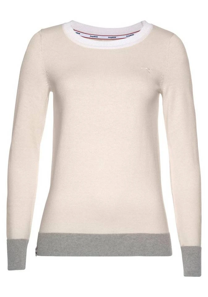 Schau dir den Rundhalspullover von KangaROOS mal genauer an. Die Logostickerei macht den Pullover individuell und peppig. Dieser Pullover ist hüftbedeckend sowie figurbetont geschnitten, sodass er deine Silhouette schön betont.