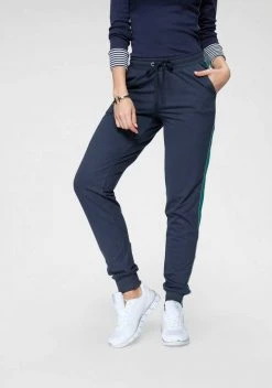 Lieblingsstück! Die Jogginghose von Kangaroos bringt einen coolen Streetwear-Style in deinen Look. Dabei begeistert die leger geschnittene Hose mit trendigen, teilweise glitzernden Kontraststreifen und Knöpfen an den Außenseiten. Das elastische Bündchen kannst du mit Kordelzug individuell regulieren, die breiten Rippbündchen an den Beinabschlüssen und die weiche Baumwollqualität mit Stretchanteil versprechen einen optimalen Sitz der Jogpants und erstklassigen Tragekomfort. Seitliche Eingrifftaschen und eine Fake-Paspeltasche am Gesäß runden das sportive Design der Damenhose ab. Stylische Glanzakzente setzt dazu der kleine Logoschriftzug hinten. Ob in der City, beim Work-out oder Zuhause, die Jogginghose von Kangaroos garantiert dir ein lässiges Outfit!
