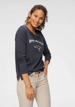 Ein cooles Basic, perfekt für jeden Tag: Das Sweatshirt von Kangaroos treibt das Wohlfühlbarometer in die Höhe. Der unkomplizierte Sweater baut auf Basic-Merkmale wie den Rundhalsausschnitt und gerippte Abschlüsse. Der aussagekräftige Statementprint aus der Vorderseite des Pullis lädt zum Wohlfühlen ein. Zahlreiche Markendetails wie das XL-Logo und die Patches unterstreichen den Kultcharakter des Labels. Kurze Seitenschlitze geben Raum und machen das angenehm weiche Sweatshirt so richtig bequem. Fehlt nur noch ein 7/8-Jeans, eine Steppjacke und Schnürstiefeletten, um den Look zu vervollständigen. Entdecke die unzähligen Kombinationsmöglichkeiten des Sweatshirts von Kangaroos!