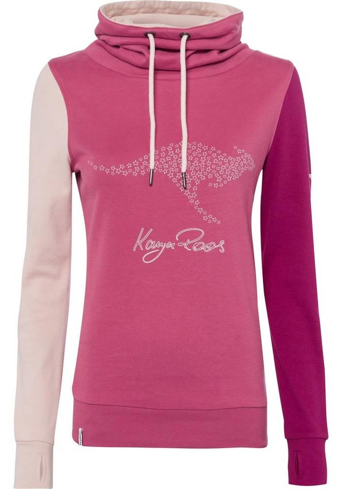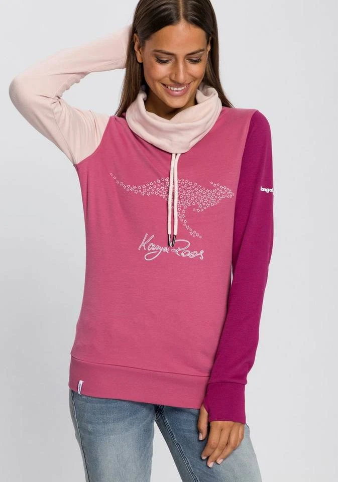 Neue Outfits lassen sich mit dem Sweatshirt von KangaROOS ganz leicht kombinieren. Denn durch die Colourblocking-Optik bekommt dein Outfit einen markanten Look mit erfrischender und dynamischer Wirkung. Beim Colourblocking wird mit Farbkombinationen gespielt. Dabei werden entweder kontrastreiche oder ähnliche Farbflächen kombiniert. Die langen Ärmel haben Daumenlöcher, die gleichzeitig den guten Sitz bieten und deine Handgelenke warm halten und enden in einem Rippbündchen, das für guten Sitz sorgt. Dieses Sweatshirt ist hüftbedeckend sowie figurbetont geschnitten, sodass es deinen Oberkörper schön zur Geltung bringt.