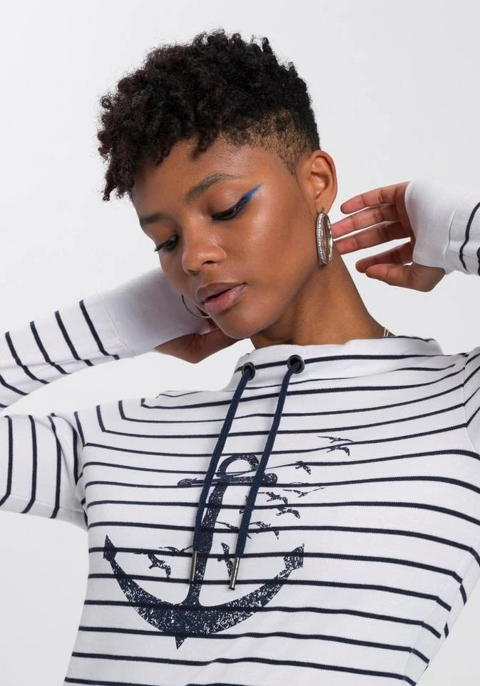 | Besondere Merkmale | mit sportlichem Stehkragen und maritimen Druck – NEUE KOLLEKTION |