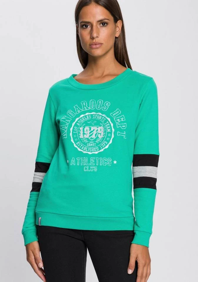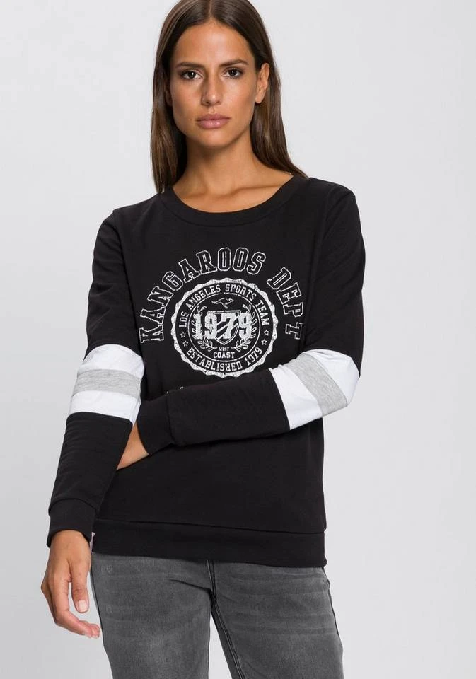 Du suchst ein entspanntes Shirt mit dem gewissen Etwas? Bei dem Sweatshirt von Kangaroos wirst du fündig. Neben einer schönen Melange-Optik überzeugt das lockere Rundhalsshirt mit dem künstlich gealterten Printmotiv auf der Brust. Mehr noch: Die langen Ärmel des Pullis werden von kontrastfarbenen Segmenten sportlich in Szene gesetzt. Streif deine Denimshorts über, rein in die Turnschuhe und schon kann es losgehen. Das Sweatshirt von Kangaroos, so sieht Streetwear aus!