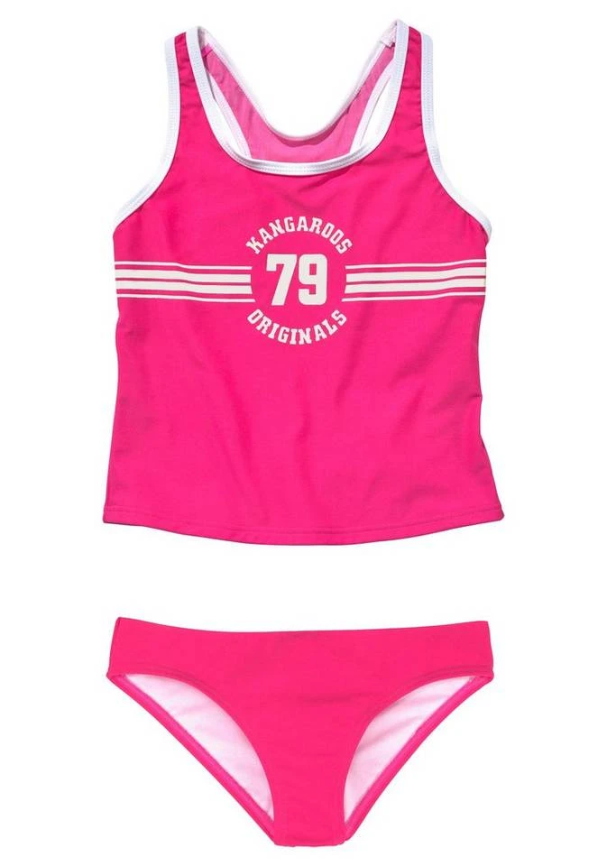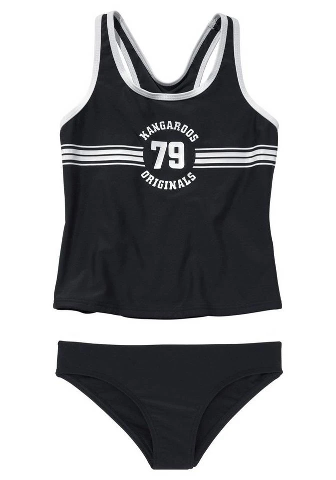 Sportliche Mädchen sind ganz verrückt nach dem Tankini aus der Serie »Sporty« von Kangaroos. Der tolle Frontdruck auf dem Oberteil mit angesagtem Racerback und den Kontrastpaspeln an Rundhalsausschnitt und Armausschnitten begeistert. Die elastische Qualität sorgt für optimalen Sitz. Der Hingucker im Schwimmbad – der sportliche Tankini von Kangaroos. Obermaterial: 80% Polyamid, 20% Elasthan (Xtra Life LYCRA®). Futter: 100% Polyester
