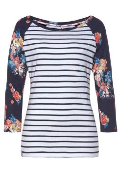 KangaROOS 3/4-Arm-Shirt mit großem Markenschriftzug am Arm Weiß-blau, Schwarz-weiß, Marine-weiß