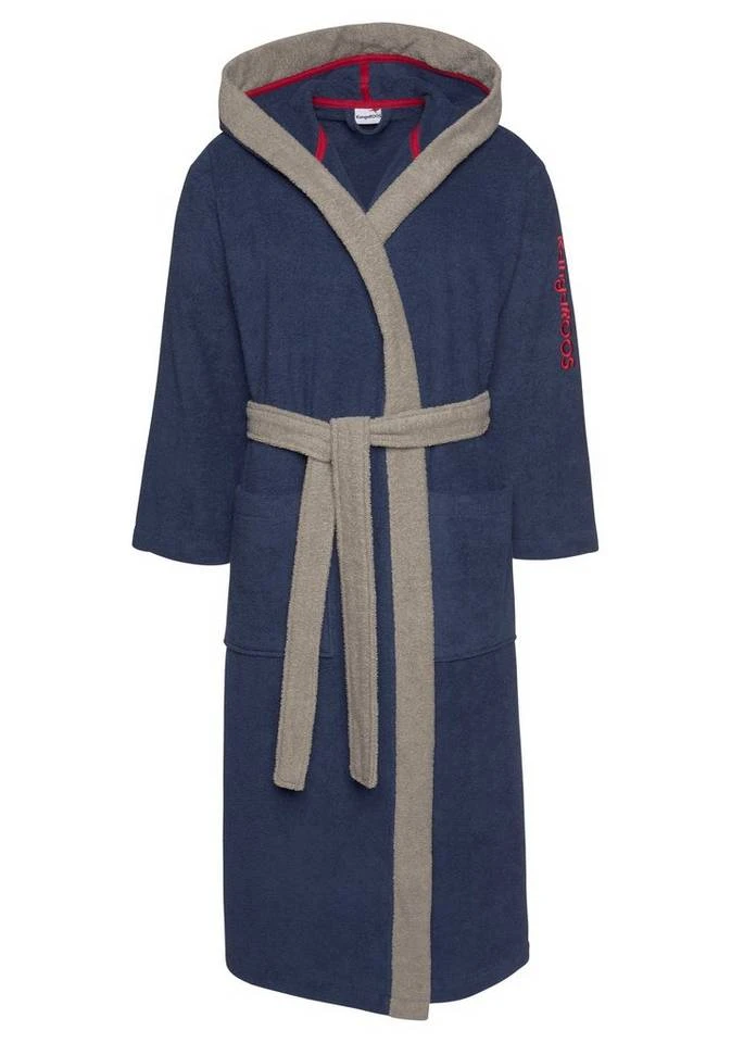 Dieser sportliche Unisexbademantel der Marke Kangaroos besticht durch den farbig toll abgestimmten Kragen, die Logostickerei und den kontrastfarbigen Gürtel. Der Bademantel Henry ist wunderbar weich, aus 100% Baumwolle hergestellt und unterstützt die Initiative Cotton made in Afrika. Der Bademantel ist bis 60°C maschinenwaschbar und trocknergeeignet, was ihn zum idealen Begleiter für Sauna, Sport und auch zuhause macht.
